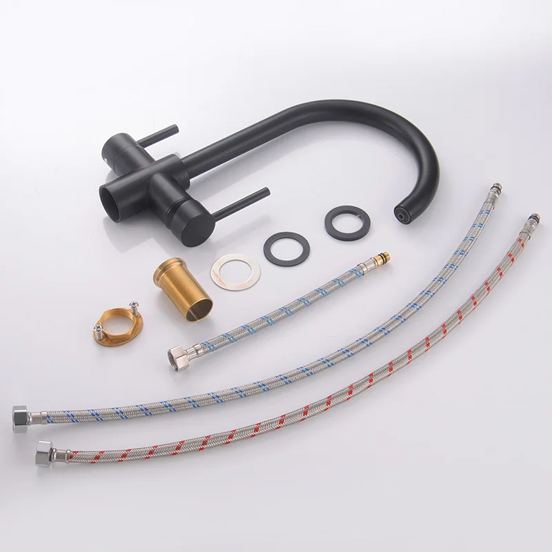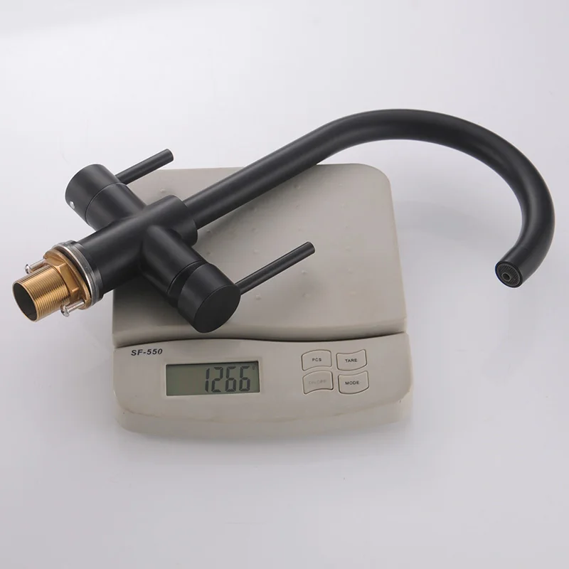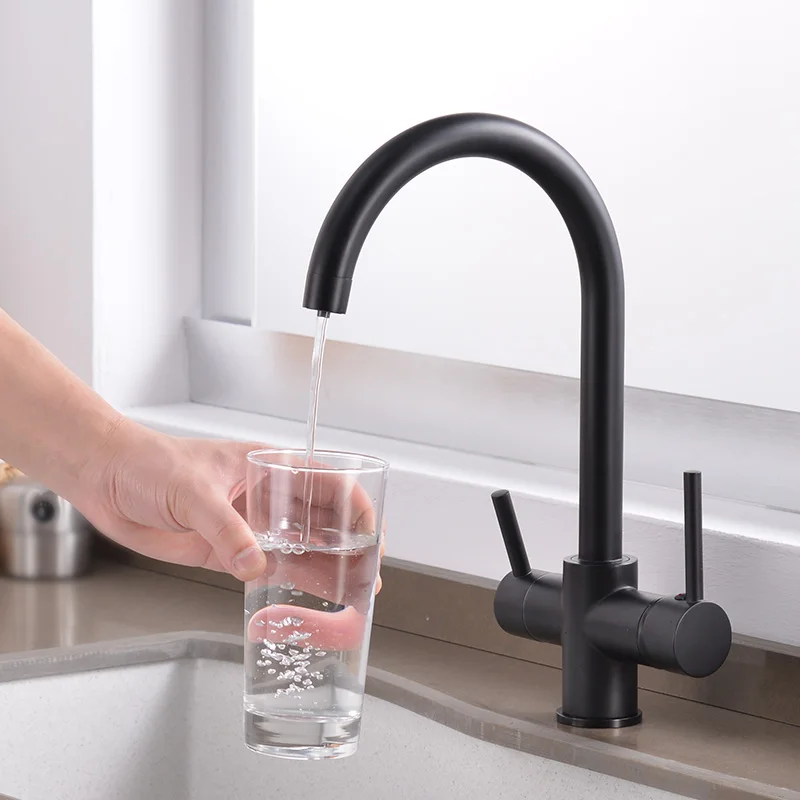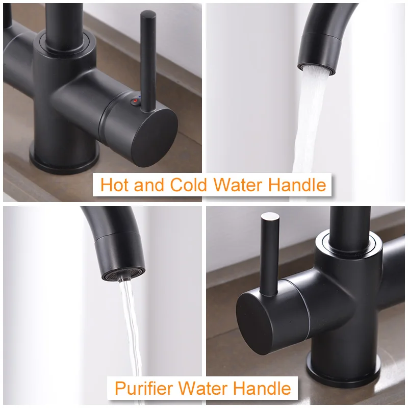 ROVOGO Matte Schwarz Dual Griff Gefiltert Kran Für Küche 360 Rotation Wasser Filter Tap Drei Möglichkeiten Waschbecken Mixer Küche Wasserhahn.