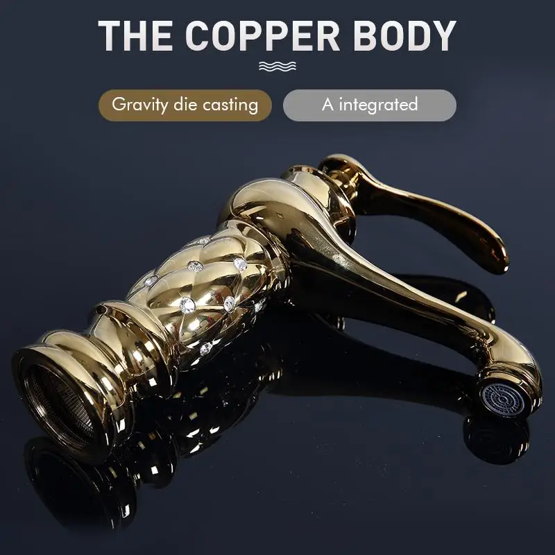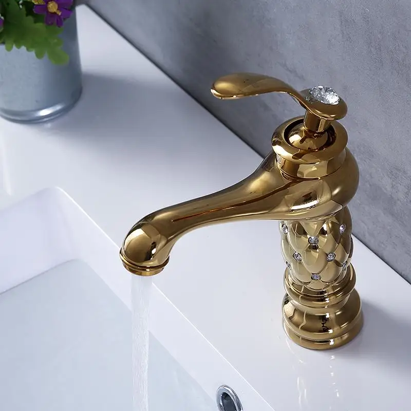 Bad Becken Armaturen Klassische Messing Diamant Wasserhahn Einzigen Handgriff Heißen Und Kalten Wasserhahn Gold Kristall Mixer Waschbecken Armaturen.