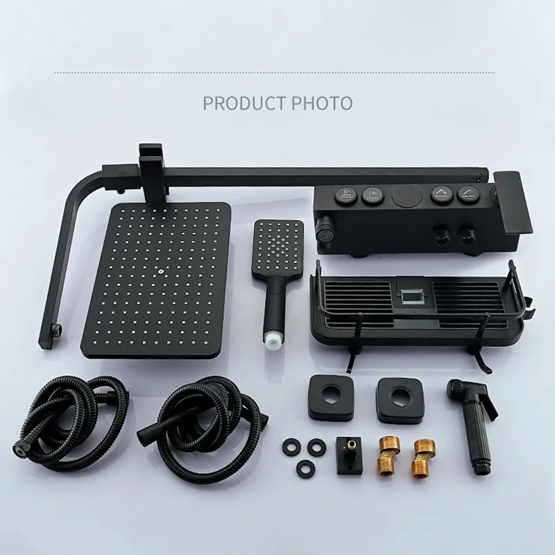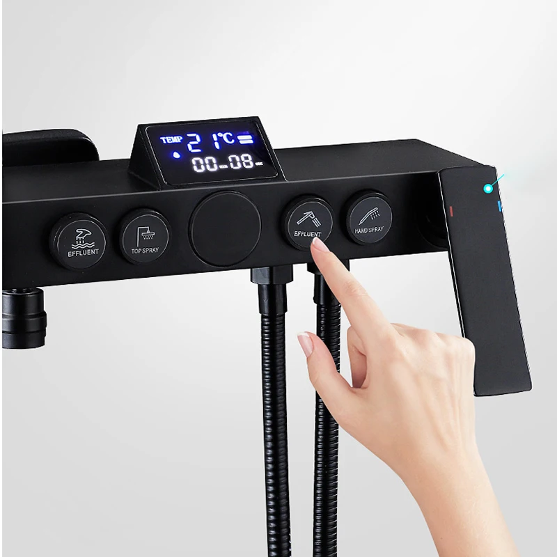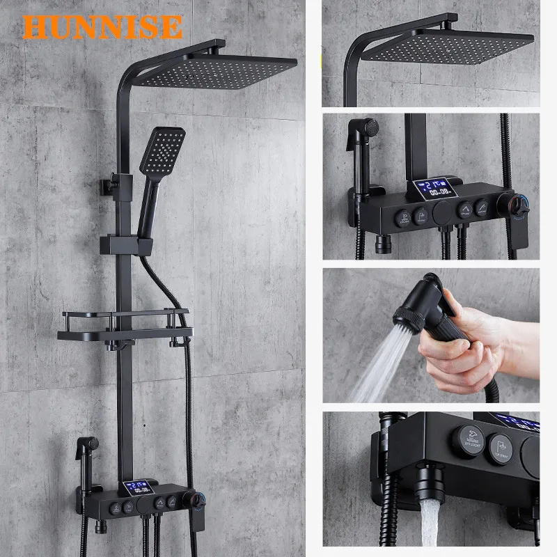Bad Dusche Set HUNNISE Matte Schwarz Thermostat Bad Dusche Mixer Set Qualität Messing Badewanne Armaturen Digitale Dusche Set.
