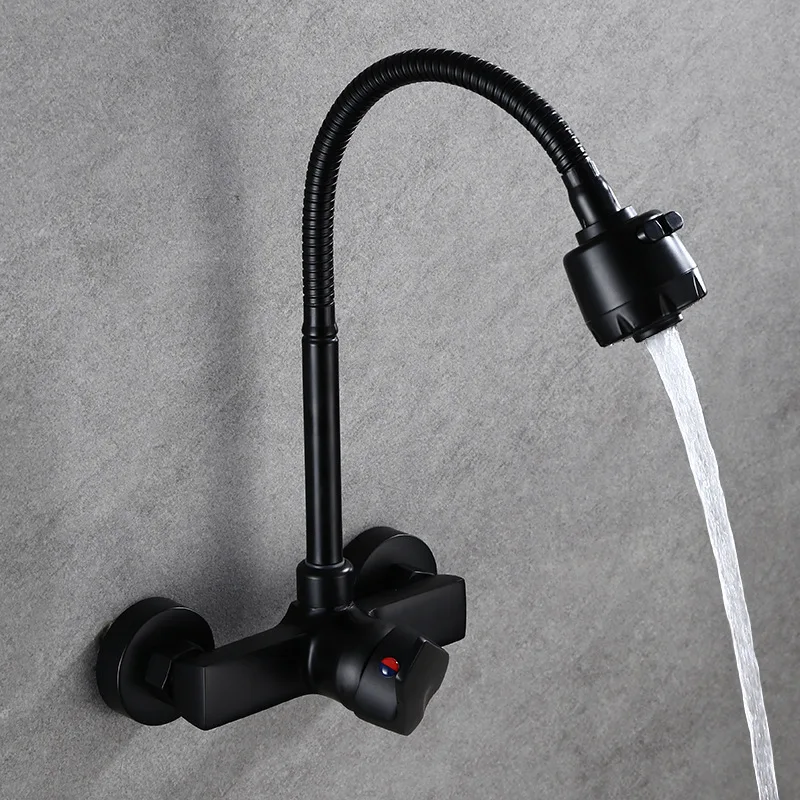 Swivel Küche Wasserhahn Wand montiert Küche Hahn Einzigen Handgriff Messing Material Schwarz Schwenk Waschbecken Mischbatterie.