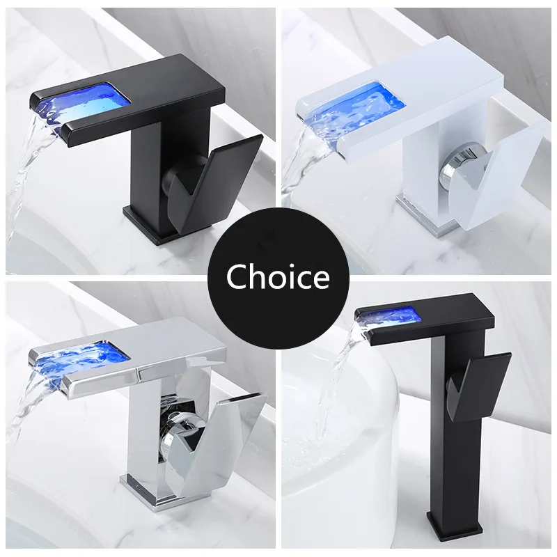 Tuqiu Becken Wasserhahn LED Wasserfall Bad Wasserhahn Schwarz Messing Becken Wasserhahn. Bad Mischbatterie Deck Montiert Becken Waschbecken Mischbatterie.