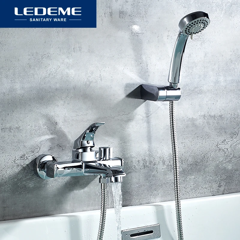 LEDEME Badewanne Wasserhahn Wand Montiert Badewanne Taps Mixer Wand Montiert Chrome Finish Dusche Set Hohe Qualität Dusche Tap L3242.