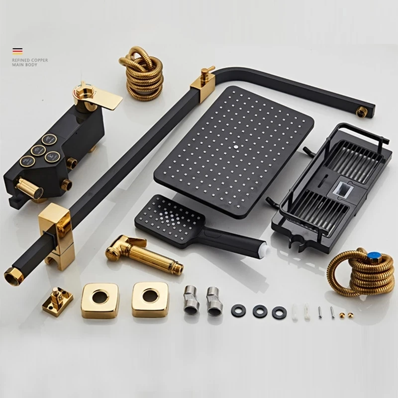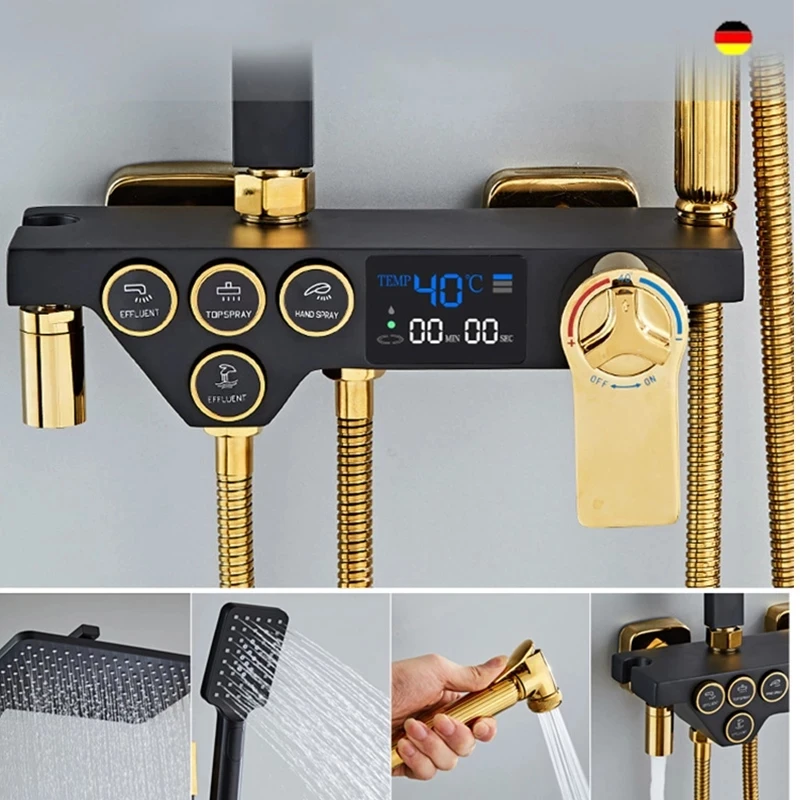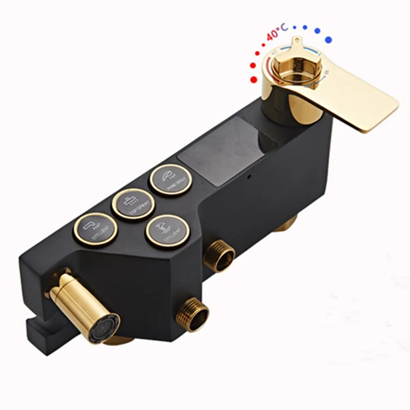 Neu Messing Schwarz Thermo Digitale Display Regen Dusche Wasserhahn Bad Dusche Wasserhähne Mit Bidet Wasserhahn Heiß Kalt Mixer Kran