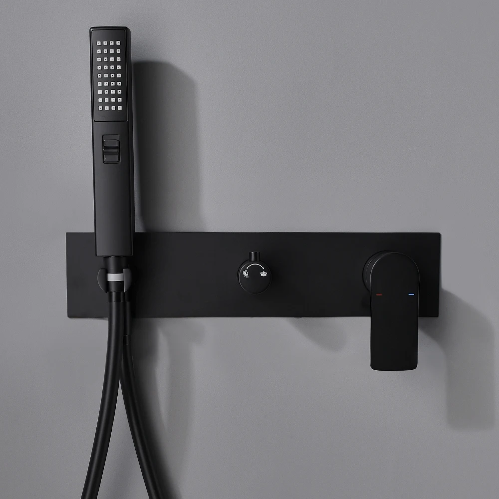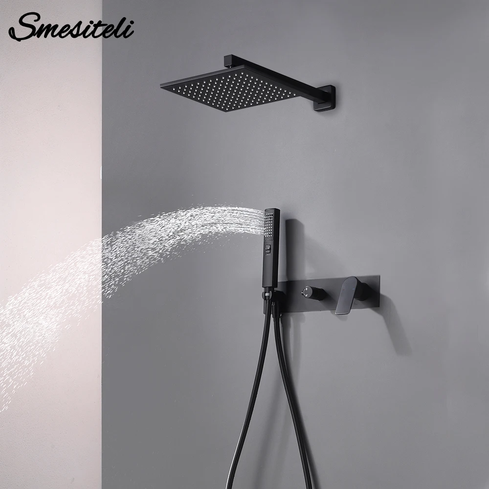 Rabatt Smesiteli Messing Matte Schwarz Wand-Montiert 2 Funktion Doppel Schalter Heißen Und Kalten Wasser Verborgen Regen Dusche System Bad wasserhahn