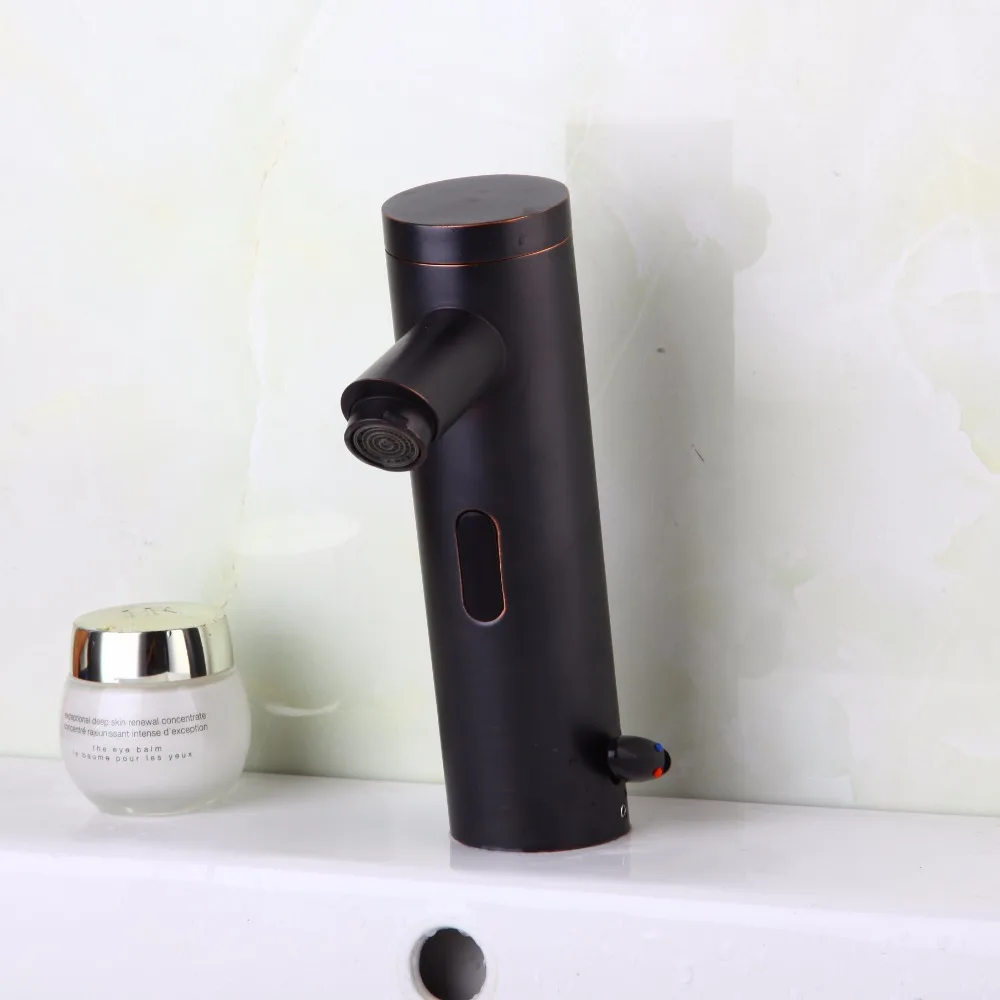 Spitzenreiter Solide Messing Automatische Sensor Wasserhahn Schwarz ORB Bad Becken Waschbecken Wasserhahn Heiß Kalt Wasser Mischbatterie Touch-Frei Infrarot becken Tippen