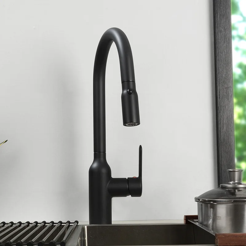 Beste Magnetische Sicheren Dual Funktion Küche Wasserhahn Pull Wasserhahn Kopf 100% Metall Küche Waschbecken Wasser Mischer Wasserhahn Black & Chrome farbe