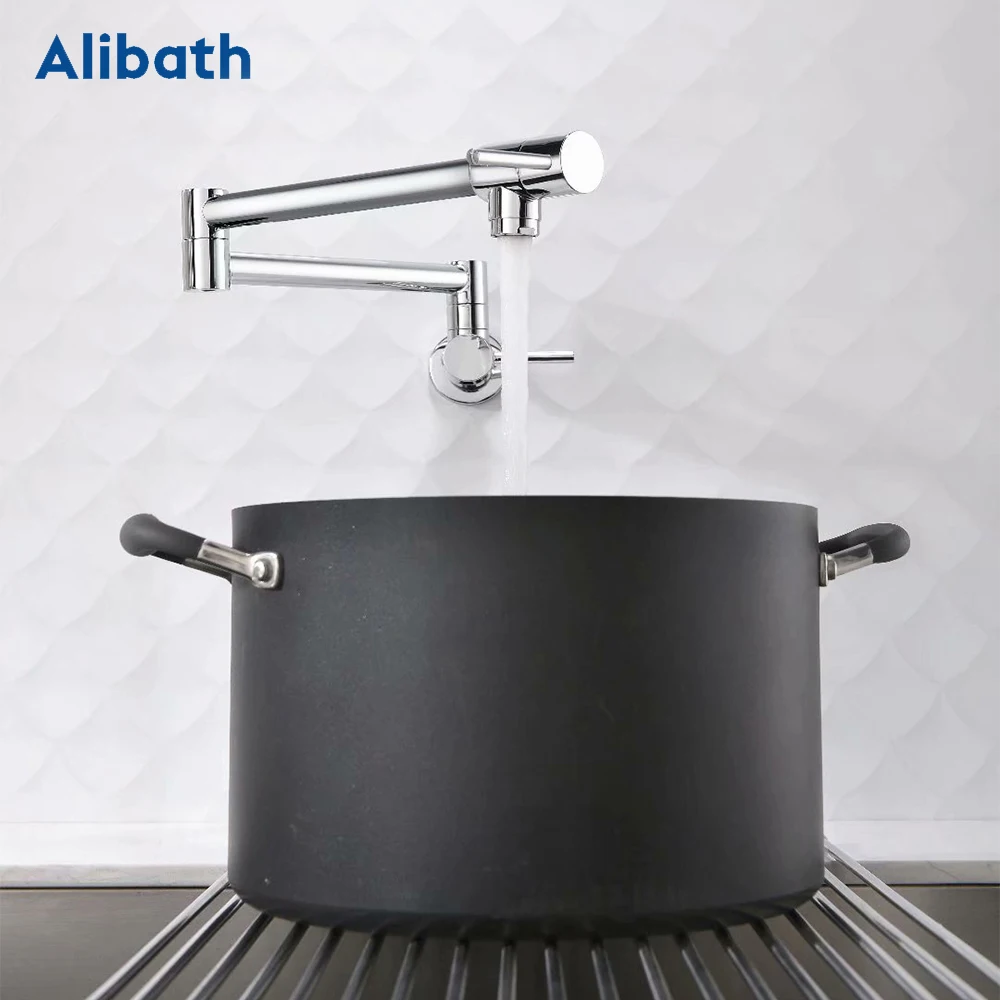Bonus Messing Wand Montiert Küche Wasserhahn Topf Füllstoff Wasserhahn Swivel Folding Versenkbare Dreh Stretch Becken Wasserhahn Waschbecken Tap.