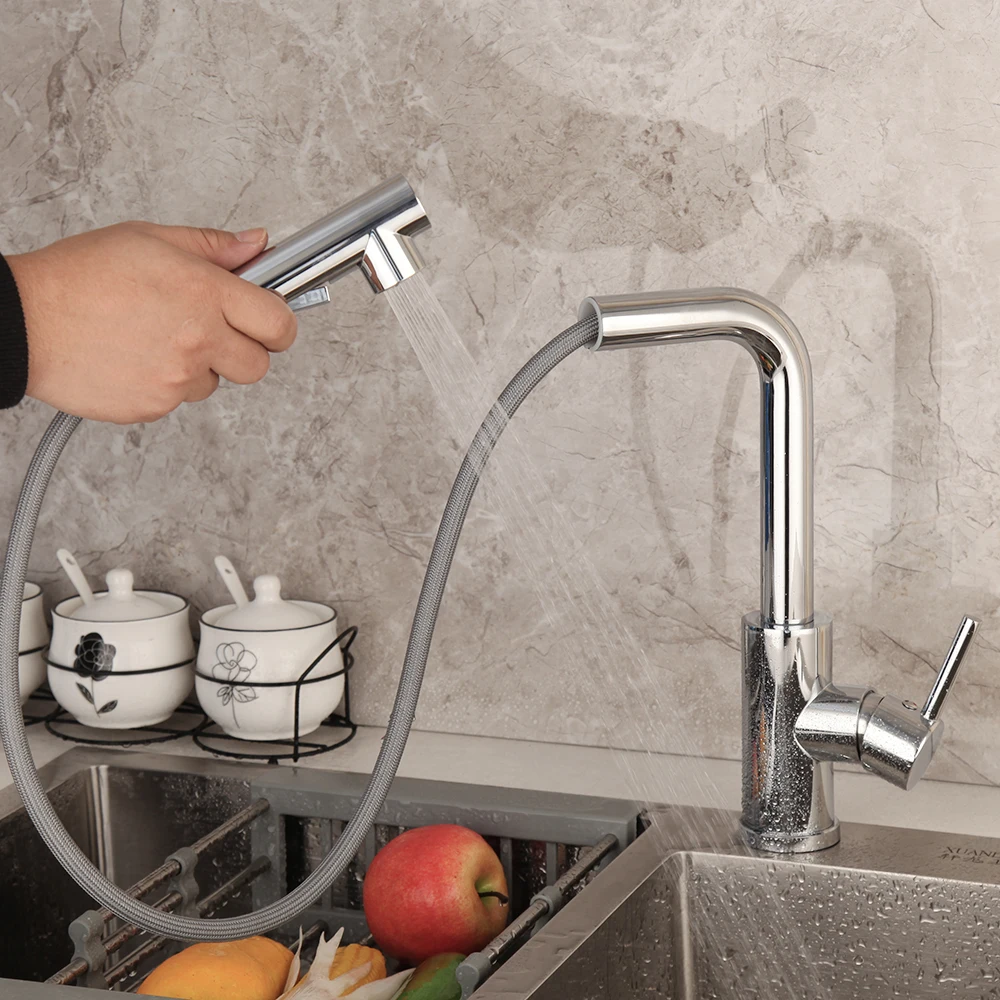 ZAPPO Verchromt Küche Becken Waschbecken Wasserhahn 360 Swivel Schiff Sinken Mischer Pull Out Auslauf Heiße und Kalte Wasserhähne armaturen.