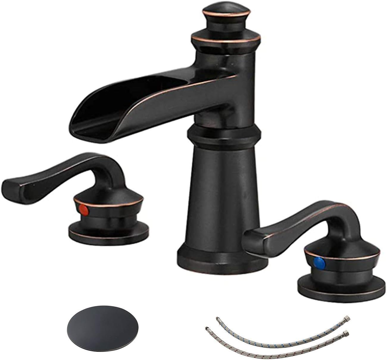 Bring elegance to your bathroom with the gorgeous blackwood waterfall single handle faucet! Made from durable bronze and ceramic material. Bring elegance to your bathroom with the gorgeous blackwood waterfall single handle faucet! With clean lines and contemporary elegance, this waterfall luxury deck three hole double handles bathroom waterfall faucet black finished three hole bathroom faucet crane waterfall tap xr8219.